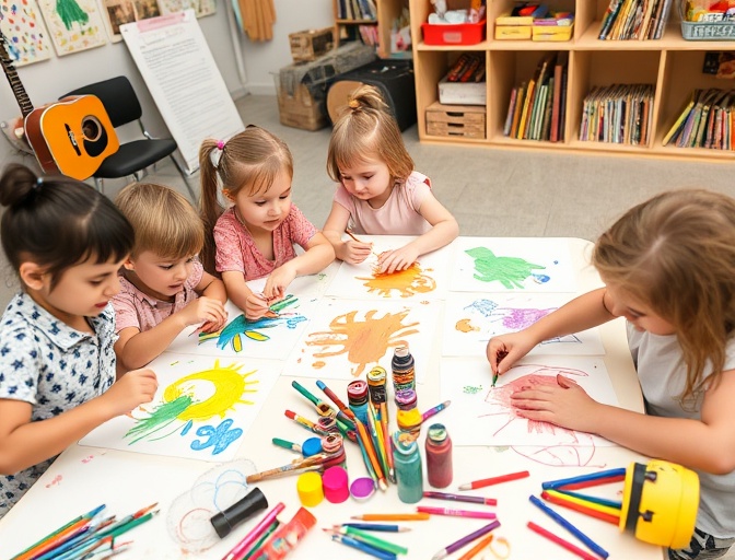 Talleres de música, teatro, danza y artes visuales para desarrollar la creatividad.